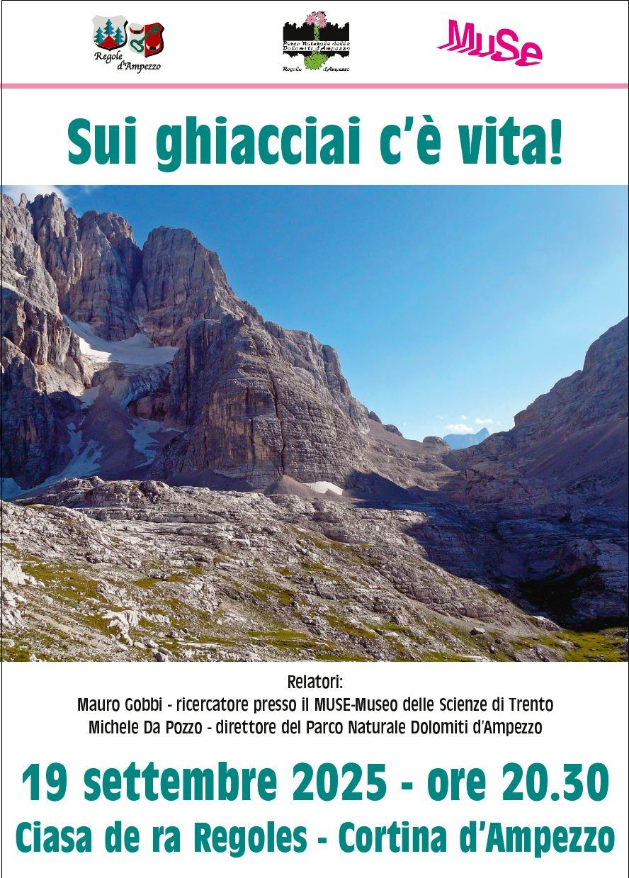 Le Regole d’Ampezzo hanno organizzato, collaborazione col MUSE – Museo delle Scienze la conferenza “sui ghiacciai c’è vita!”, che vede come relatori Mauro Gobbi del MUSE e Michele Da Pozzo, direttore del Parco Naturale delle Dolomiti d’Ampezzo.